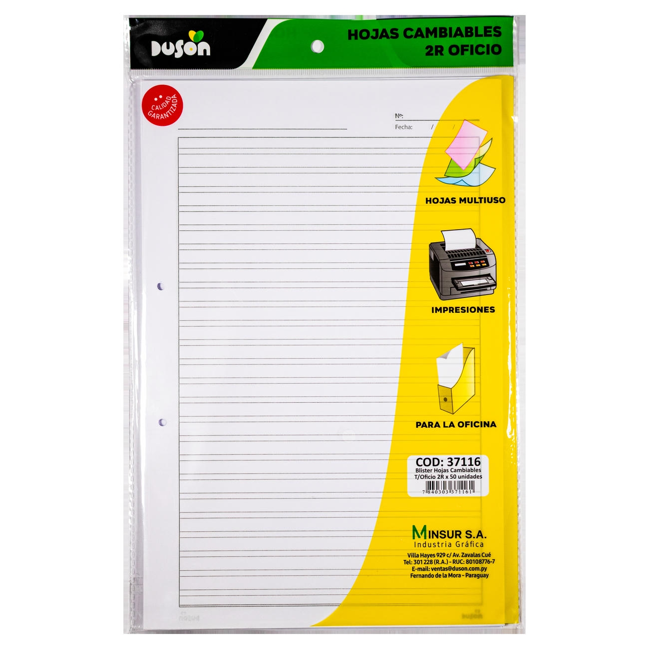Blister hojas cambiables oficio 2 rayas x50